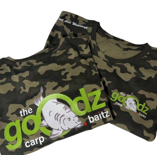 Shop the Goodz Carp Baits Camo T-shirt — durable, comfortable, and perfect for blending in on the bank. Ideal for anglers who want style and function in one.